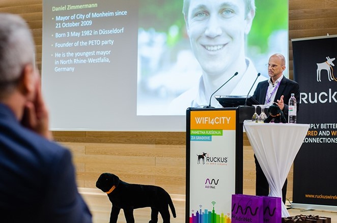 Hrvatskim gradovima i općinama g. Gradwohl je detaljnije predstavio konkretno iskustvo pametnog njemačkog grada Monheima u uvođenju Wi-Fi infrastrukture koja je omogućila jedinstvenu platformu za razvoj pametnih gradskih usluga, pametne rasvjete i pametnog parkinga, te njihovi planovi i vizije za budući razvoj grada.